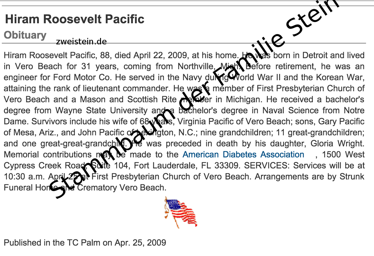 | Geburt eines Sohns #2 | Hiram Roosevelt Pacific 27. Mai 1920 (Alter 42 Jahre) |